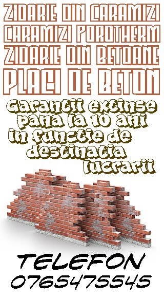 Caramizile sunt unele dintre cele mai vechi si mai raspandite produse pentru zidarie. Ele se utilizeaza in constructia cladirilor individuale sau, in cazul constructiilor combinate (cu metal, ciment sau sticla), se folosesc pentru pereti neportanti. Insa nu ne rezumam doar aici, putem executa zidarii din orice material, betoane, bca, caramizi porotherm, in general din orice material care va este necesar constructiei dvs.